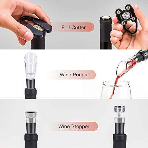 ➔ Torryvrije accessoires: de complete set beschikt over een premium beluchter voor meer smaak en gietprecisie. Scherpe snijaccessoires voor het verwijderen van folie. Vacuümconservering en stoppen verhogen de versheid van de wijn door lucht uit de stoppen te verwijderen. Alles wat je nodig hebt om je rode of witte lievelingssoort te verbeteren, te conserveren, te gieten en te genieten.