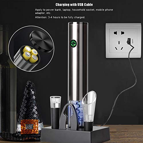 Oplaadbare, duurzame kurkentrekker: hij bestaat uit een duurzame aluminiumlegering met buitengewone textuur. Wij zijn uitgerust met een USB-oplaadkabel om ervoor te zorgen dat hij je lang kan begeleiden, zonder herhaaldelijk batterijen te hoeven kopen.