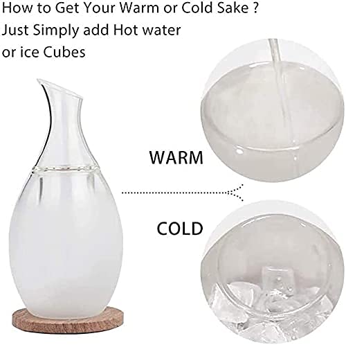 Sake-Set Met Hotter: Deze Sake-Set Wordt Geleverd Met Twee Delen, De Binnenste Carefe Met Afgeschuinde Mond Is Geweldig Om Sake Te Gieten, De Buitenste Vatbasis Is Om Heet Water Of Ijs Toe Te Voegen. Zo Gemakkelijk Om Je Warme Of Koude Sake Te Maken.