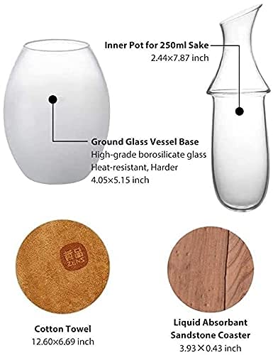 Sake-Set Met Warmer: Deze Sake-Set Wordt Geleverd Met Twee Delen, De Binnenste Carefe Met Afgeschuinde Mond Is Geweldig Om Sake Te Gieten, De Buitenste Vatbasis Is Om Heet Water Of Ijs Toe Te Voegen. Zo Gemakkelijk Om Je Warme Of Koude Sake Te Maken.