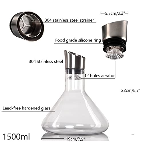 Het prachtige decanteerapparaat verspreidt de wijn 360 graden langs het hele glaslichaam, dat het contactgebied tussen de wijn en de lucht aanzienlijk verhoogt, het bereiken van een volledig decanterend impact.