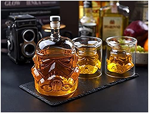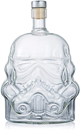 Transparante glazen karaf in de vorm van een Stormtrooper-kop